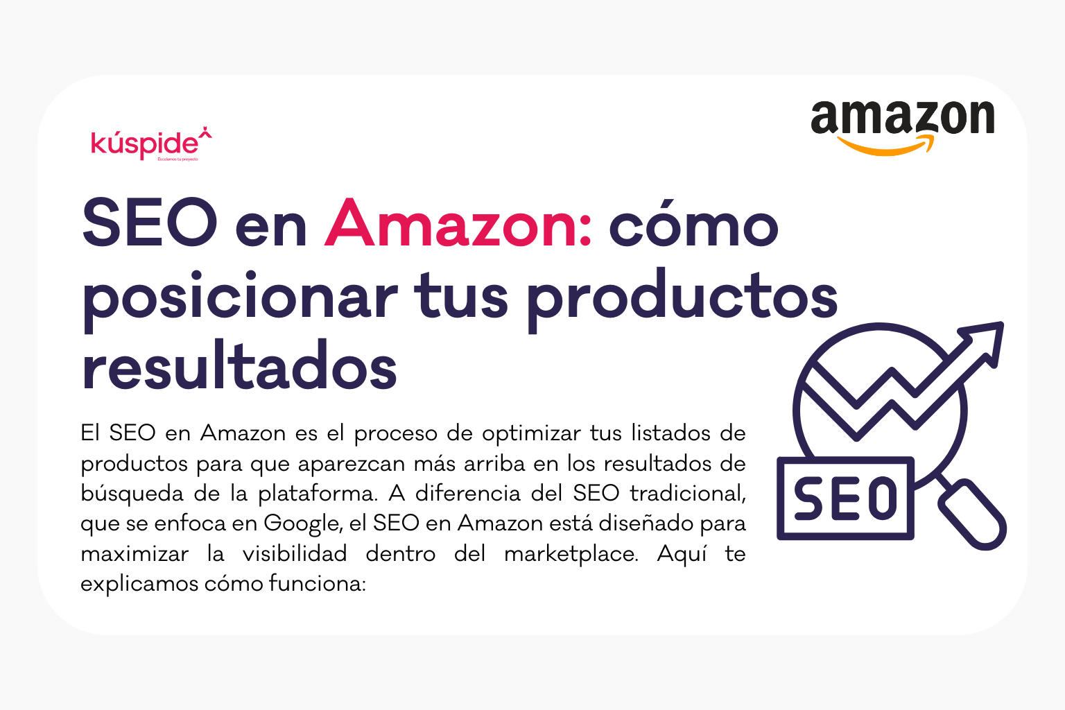 En el competitivo mundo de Amazon, no basta con tener un buen producto; también necesitas que los clientes lo encuentren. Aquí es donde entra en juego el SEO (Optimización para Motores de Búsqueda). En Kúspide, utilizamos estrategias avanzadas de SEO en Amazon para ayudar a las marcas a posicionar sus productos en los primeros resultados de búsqueda, aumentar su visibilidad y, por supuesto, sus ventas. En este artículo, te explicamos cómo funciona el SEO en Amazon y te damos consejos prácticos para optimizar tus productos.